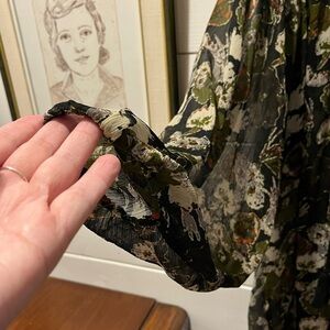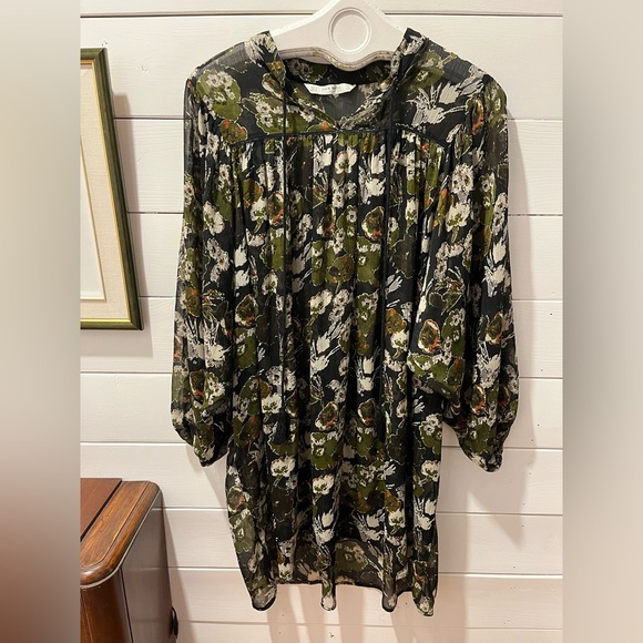 Chic Zara tunic with floral pattern. Features black and green hues. Perfect for casual wear. Very large fit.