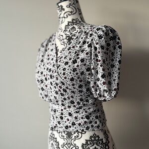 Zara Floral Wrap Crossover Crop Top Shirt Blouse Short Sleeve White Black Red S