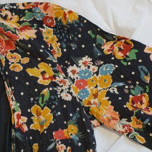 Deep V-neck dress with long sleeves. Interior lining. Zip & tie closure.