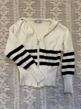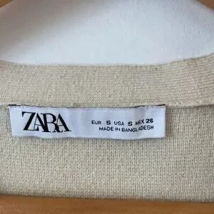 Zara knit cardigan with v neck and long sleeves. Front pearl button closure