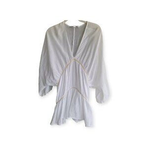 Elevate your summer wardrobe with this Zara sheer tunic in cream with tan trim. Perfect as a beach cover-up or paired with shorts, it's a versatile addition to any outfit.