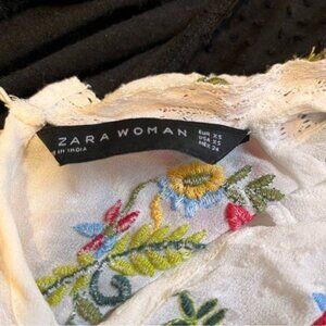 Zara Flowy Floral Embroidered White Blouse Size XS