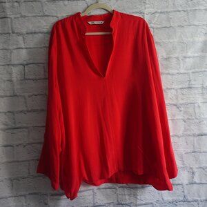 Zara Flowy Tunic in red. Never worn. Small manufacturer's imperfection near left shoulder shown in photo 9 and reflected in price.