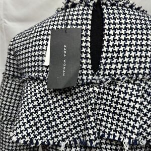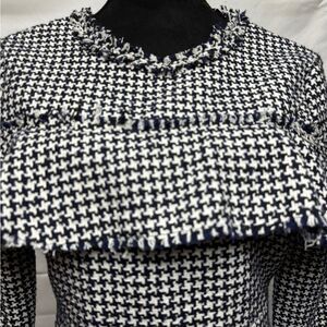 Zara Frilled Tweed Houndstooth Dress