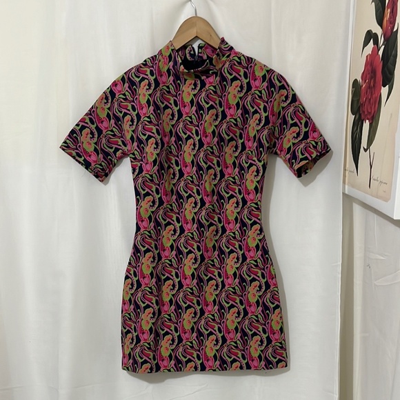 Zara Geometric Design Short Sleeve Mini Dress a177