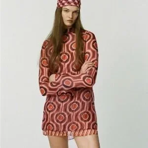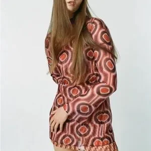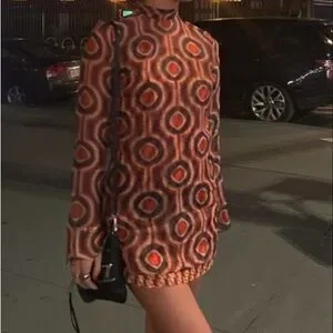 Elevate your style with this chic geometric patterned dress. The vibrant retro texture design adds a bold touch to any occasion. Perfect for any place!