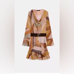 Zara Geometric Pattern/patchwork Mini Dress with Belt - Multicolor