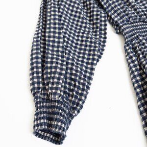 Zara Gingham Check Mini Dress Navy White Smocked Waist 100% Cotton