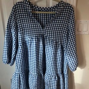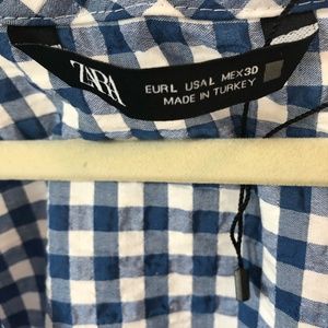 Zara Gingham Mini Tiered Dress - Blue and White - Size Large