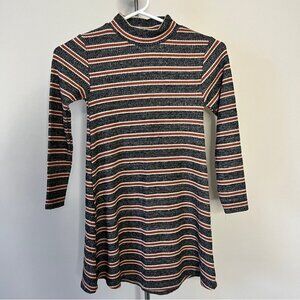 Zara Girl Striped Soft Touch Dress Long Sleeve Curved Hem Comfy Sz 9, 134cm