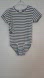 Worn once! This stylish black & white striped bodysuit with ruffle detail on the right side is comfortable & easy to wear, with a snap closure for convenience.