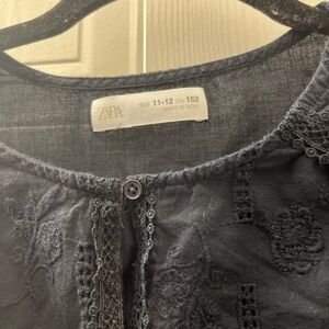 zara girls black button-up embroidered blouse