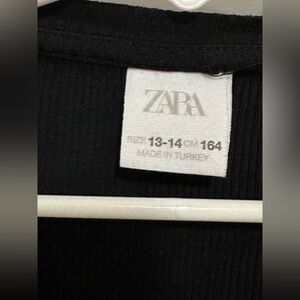 Zara: Girls Ruffle Long Sleeve Top- Size 13-14. Previously owned, still in good condition. There is some moderate washing wear/pilling & slight fading in a few areas throughout. Would be great for casual wear or for dressier occasions. The material tag has been previously removed (last photo) & I am unable to confirm material contents of the top. Please only purchase if agreeable to the missing info to prevent a discrepancy concern upon receipt of the item.