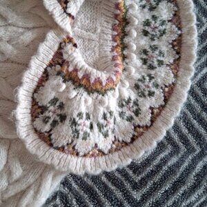 Keep your little one warm and stylish in this adorable white knit sweater from Zara! Featuring a lovely textured cable knit design, this sweater has a charming round neckline adorned with a beautifully embroidered and scalloped collar in cream, brown, and green floral patterns. Made with a cozy blend of Acrylic, it offers both warmth and a soft feel. Perfect for cooler days and adding a touch of sweetness to any outfit.