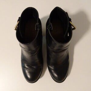 Zara Gold Buckle Detail Ankle Block-heeled Ankle Booties | Black | Size 36