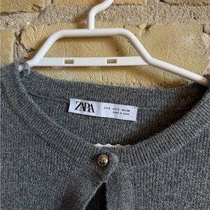Chic gray cardigan with button-up front. Ideal for layering. Essential for any wardrobe.