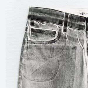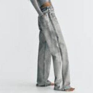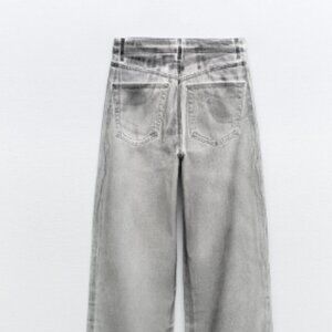 Experience ultimate comfort with Zara's relaxed wide leg baggy gray jeans, featuring a high-waisted design and a soft, flowing silhouette. The stone-washed and metallic coated finish adds a touch of vintage charm, making them a versatile addition to any wardrobe.