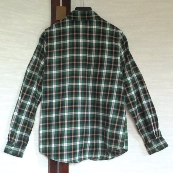 Zara Green Black White Red Plaid Check Long Sleeve Shirt with Silver Studs
