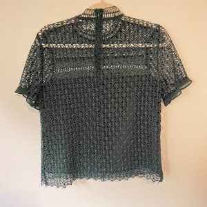 Zara Green Lace overlay short sleeve blouse size medium fits small