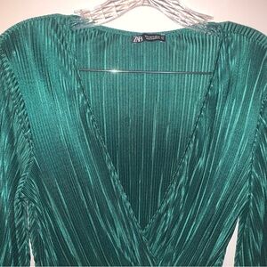 Zara Green Pleated Blouse S