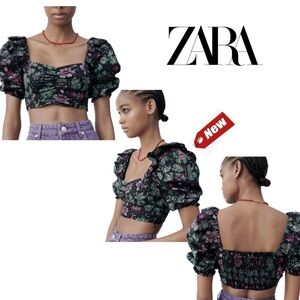 Chic green ribbed crop top by Zara. Features long sleeves and stylish design. Perfect for casual outings.