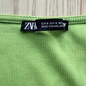 Zara Green Ribbed Ruffle Sleeve Ruched Drawstring Crop Top Size S