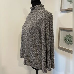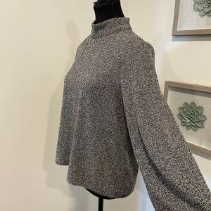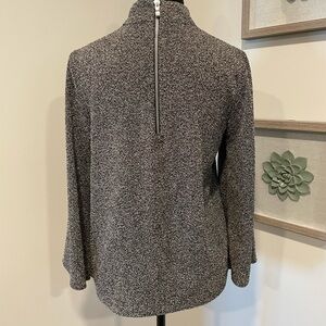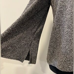 Zara grey Boucle sweater in a size small. Features bell sleeves with split cuff and exposed back zipper. Relaxed fit with mock neck. Perfect for being stylish and cozy! In very good condition with no flaws.
