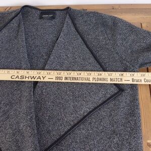 Zara Grey Knit Open Front Sweater Jacket with Faux Leather Trim
