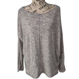 Zara Grey Lightweight Knit Long Sleeve Top Sweater Gray M Oversized Hi-Lo