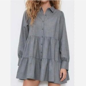 🇪🇦 Zara Grey Tiered Mini Shirt Dress