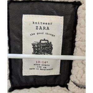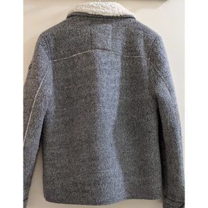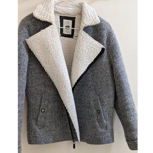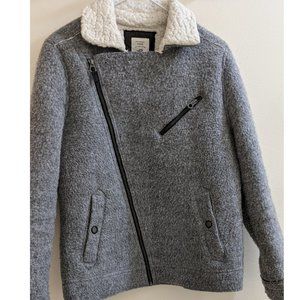 Zara Winter Jacket. Grey textured jacket with white fleece lining. Great for Fall and Winter weather. Has a structured fit with a diagonal zipper and pockets with snap button closures. The jacket is from Zara kids, but fits like a Women's small.