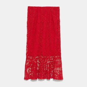 Fitted skirt with trumpet style ruffled hem. Lined, hidden side zip closure. Brand new