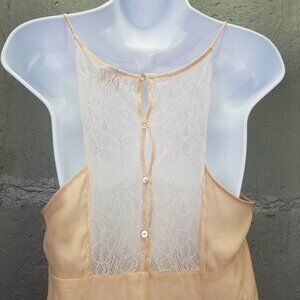 Zara Halter Tank Top Sz M Spaghetti Strap Lace Peach MoP Buttons Satin Coquette