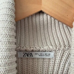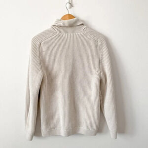 Zara Heavy Ribbed Knit Turtleneck Sweater Cotton Ecru Cream Size Large