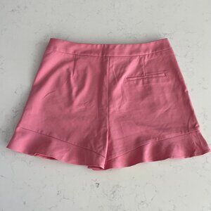 Zara Hi Waist Casual Cotton Poly Blend Frill Flounce Shorts Pink Sz L