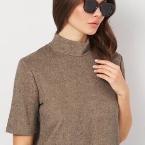 Zara High Neck Structured Dress | Brown | Size S