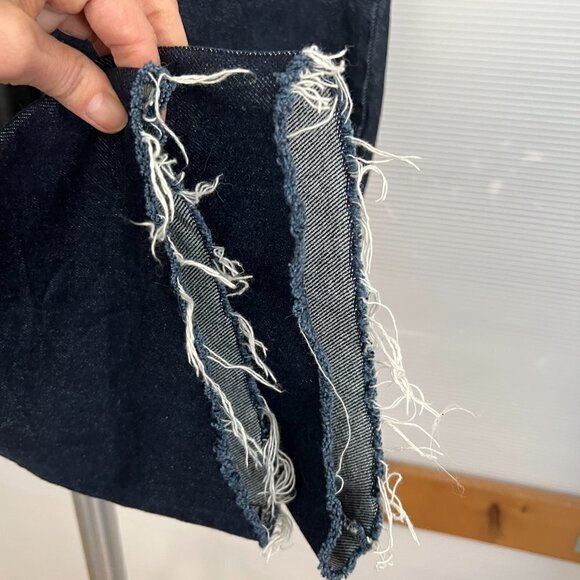 Zara High Rise Button Fly Straight Cropped Raw Hem Denim Jeans Dark Wash Sz 4