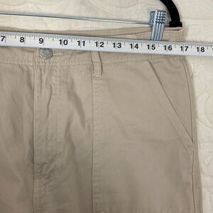 Zara Cargo Pants. Women's tag size 10 (See photos for actual measurements). Lightweight canvas feel to fabric (fabric tag cut out). Khaki / tan colour. Large cargo pockets with snap closures. Flap back pockets. High rise. Relaxed fit, straight leg.