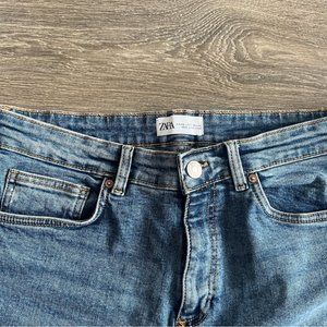 Zara High Rise Stretch Denim Frayed Cut Off Shorts