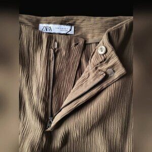 Zara High Waist Flared Leg Crinkle Pants Tall Size Medium