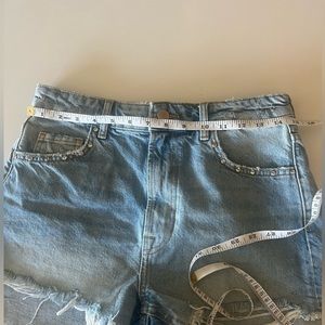 Zara High Waisted Denim Rhinestone Distressed Shorts