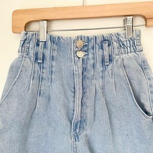 Stylish and comfortable light blue denim shorts perfect for casual outings. Features a high-waisted design for a flattering fit.