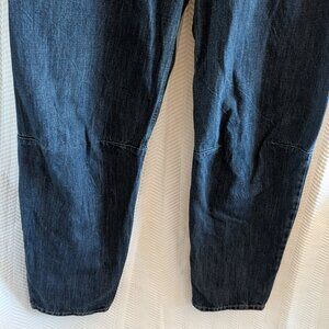 Zara Horseshoe Barrel Jeans Size 8 High Waist Sculpted Leg Dark Blue Wash Denim