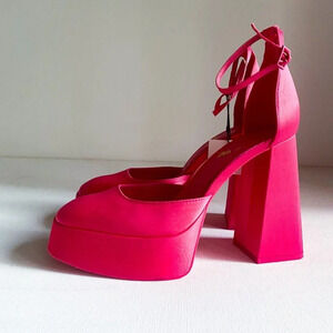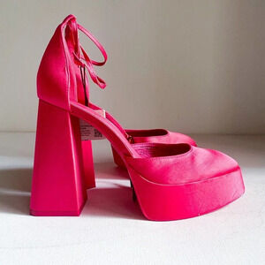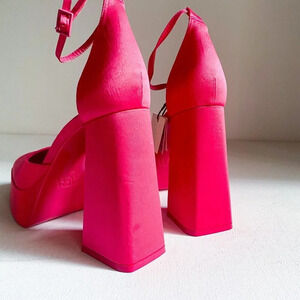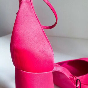Zara Hot Pink Satin Chunky Block Heel Platform Heels 7.5