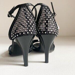 Zara Into the Night Black Mesh Rhinestone Open Toe Sexy Heels 36 NWT