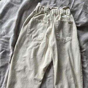 Zara Ivory Ecru Barrel Leg Paperbag Waist High Rise Sculptural Denim Jeans US 4