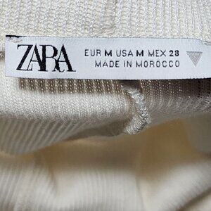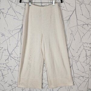 Zara Ivory Ribbed Knit High Rise Pull On Wide Leg Pants