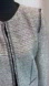 Good condition. Blazer has one hook clasp at the very top. Wrist cuffs are an unfinished raw ham.Blazer has a very subtle metallic silver threading throughout.