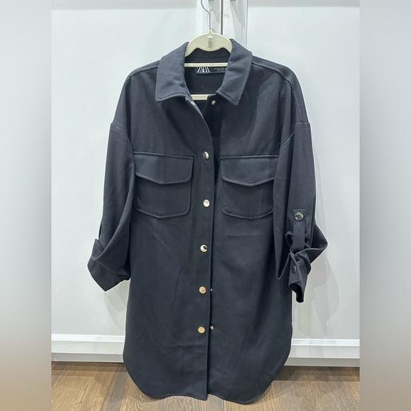Zara, black, light coat. Size small. Like new.