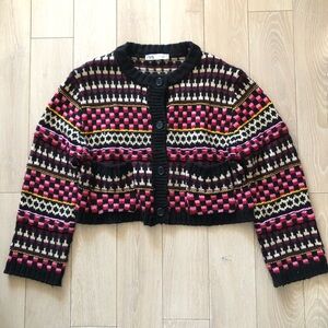 Zara Jacquard Multicolored Cropped Pocket Cardigan Jacket Size L